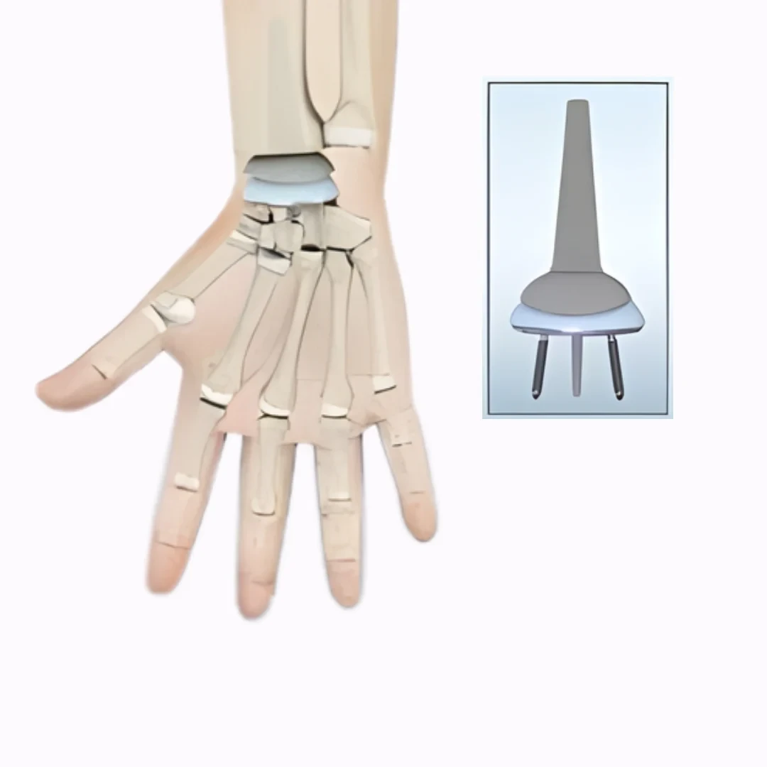 Wrist joint replacement, also known as wrist arthroplasty, it is a surgical procedure where a damaged or severely arthritic wrist joint is replaced with an artificial joint (prosthesis). This procedure is typically recommended when non-surgical options no longer relieve pain, and movement becomes limited due to conditions like rheumatoid arthritis or osteoarthritis. The goal is to reduce pain and restore motion, helping patients regain daily function with comfort.