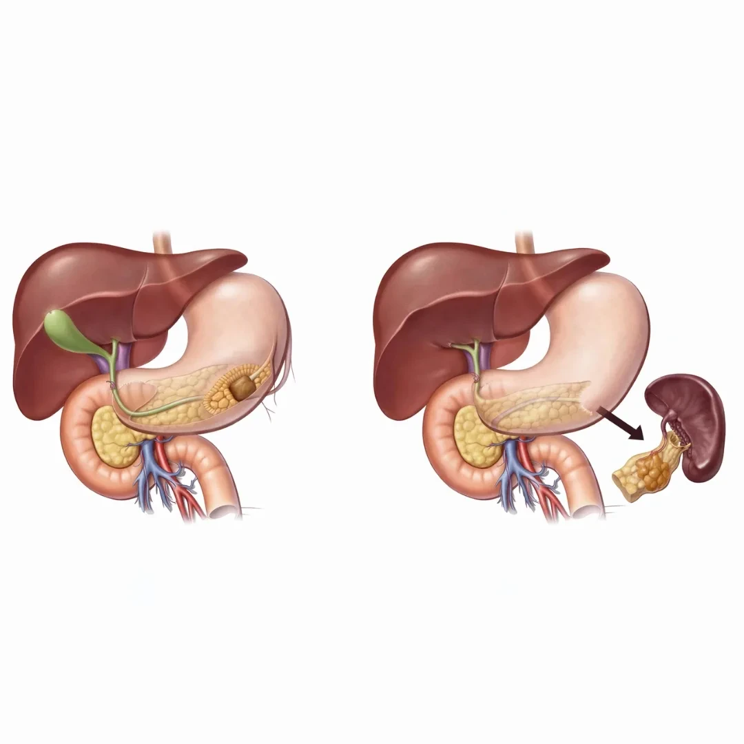 Pancréatectomie distale vs Whipple : La procédure Whipple est plus complexe et implique l'ablation de plus d'organes. La pancréatectomie distale est une chirurgie moins étendue avec une récupération plus rapide.