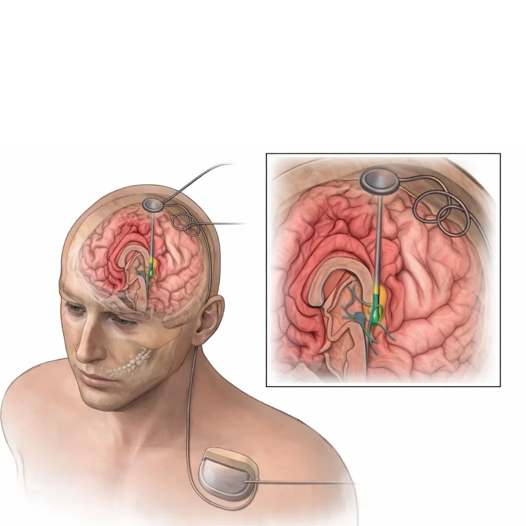 Глубокая стимуляция мозга (DBS) — это современная терапия для лечения расстройств движений, таких как болезнь Паркинсона, эссенциальный тремор и дистония. Процедура включает в себя имплантацию глубокого стимулирующего устройства — небольшого прибора, который посылает электрические сигналы в определенные участки мозга. Эти сигналы помогают контролировать аномальную активность мозга, снижая симптомы, такие как тремор, жесткость и трудности с движением.