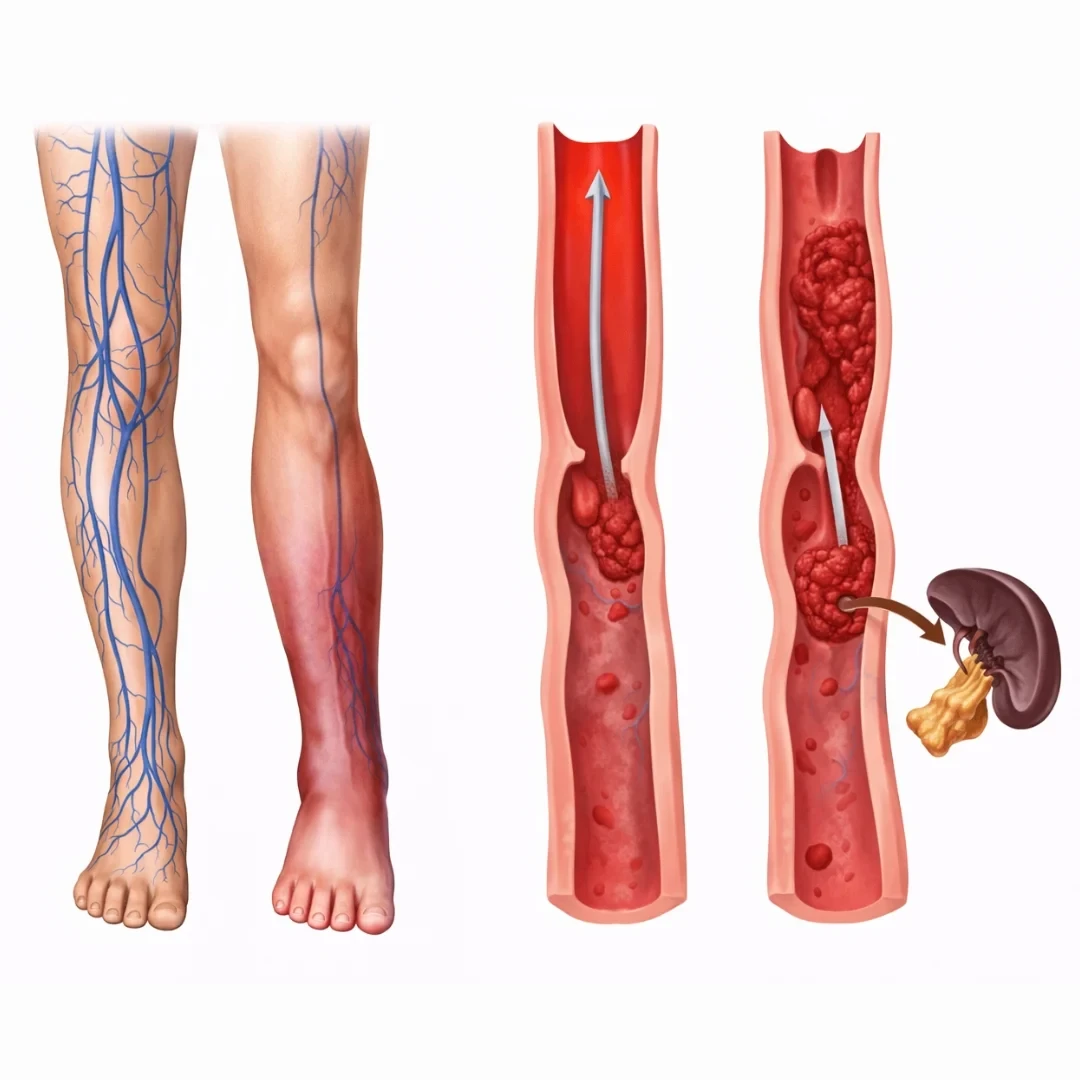 Глубокая венозная тромбофлебит (ГВТ) — это состояние, при котором в глубокой вене, обычно в ноге, образуется тромб. Это может вызвать отек, боль и другие осложнения, если не лечить. ГВТ может быть опасной, если тромб перемещается в легкие, вызывая тромбоэмболию легочной артерии (ТЭЛА), угрожающую жизни. Раннее обнаружение и лечение имеют решающее значение для предотвращения осложнений и улучшения восстановления.