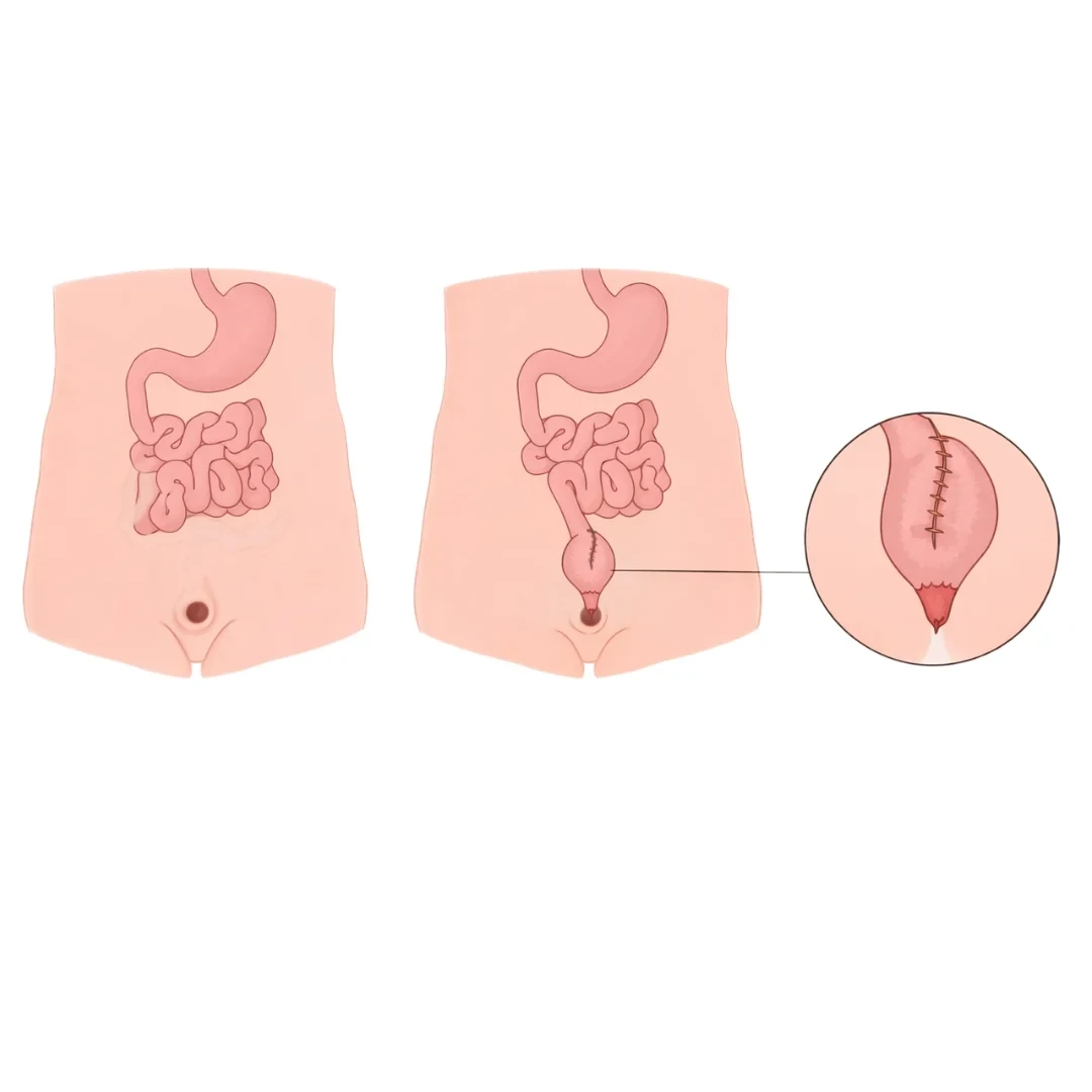 Формируется временная илеостомия (отверстие в брюшной стенке) для обеспечения заживления.